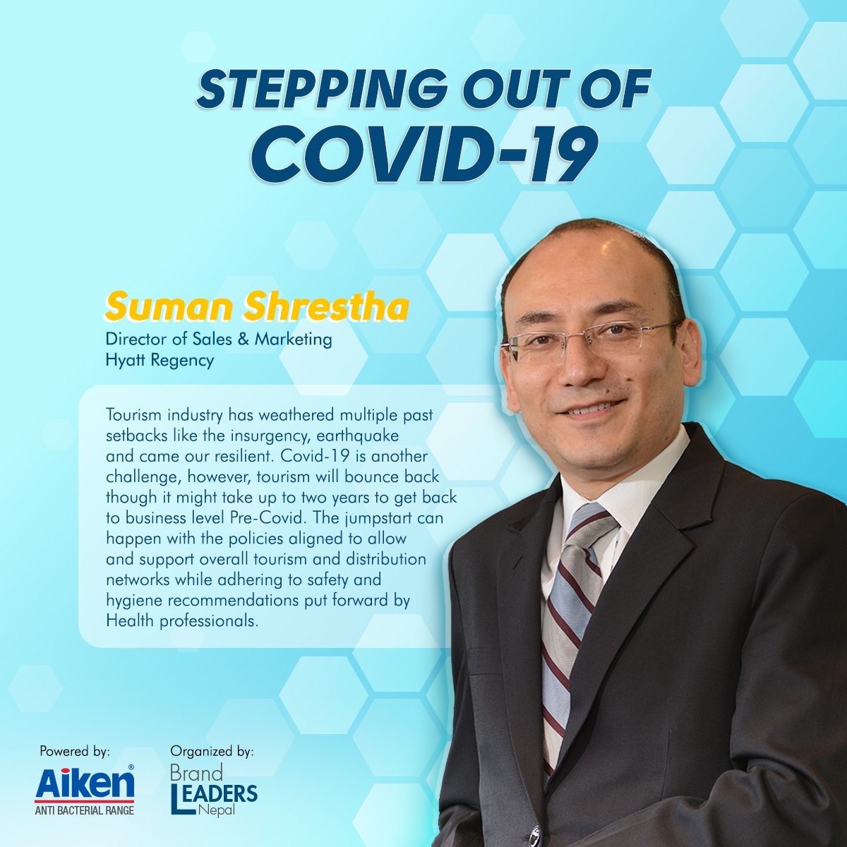 This year has been challenging, and we are anticipating how things will be once we step out of COVID. And how will businesses get back after this global crisis? On 24th May 2020, panelists Abhishek Kumar, Director of Abhi Raj Ventures Pvt. Ltd, Sole importer of Wipro Consumer Care and Vinni Cosmetics, Prashanta Manandhar, Founder of Home Supplies Pvt. Ltd. and Suman Shrestha, director of Sales and Marketing, Hyatt Regency along with moderator Mr. Brijendra Joshi, Chief Executive Officer, Rooster Logic Pvt. Ltd. discussed how industries plan to step out of COVID-19 in Nepal. The webinar was organized by Brand Leaders Nepal, with creative partner Digital Advantage and sponsored by Aiken Anti Bacterial Range. As the webinar brought panelists from different business backgrounds, their discussion shed light on how businesses are coping in these times, and how they plan to move on once they step out of covid.