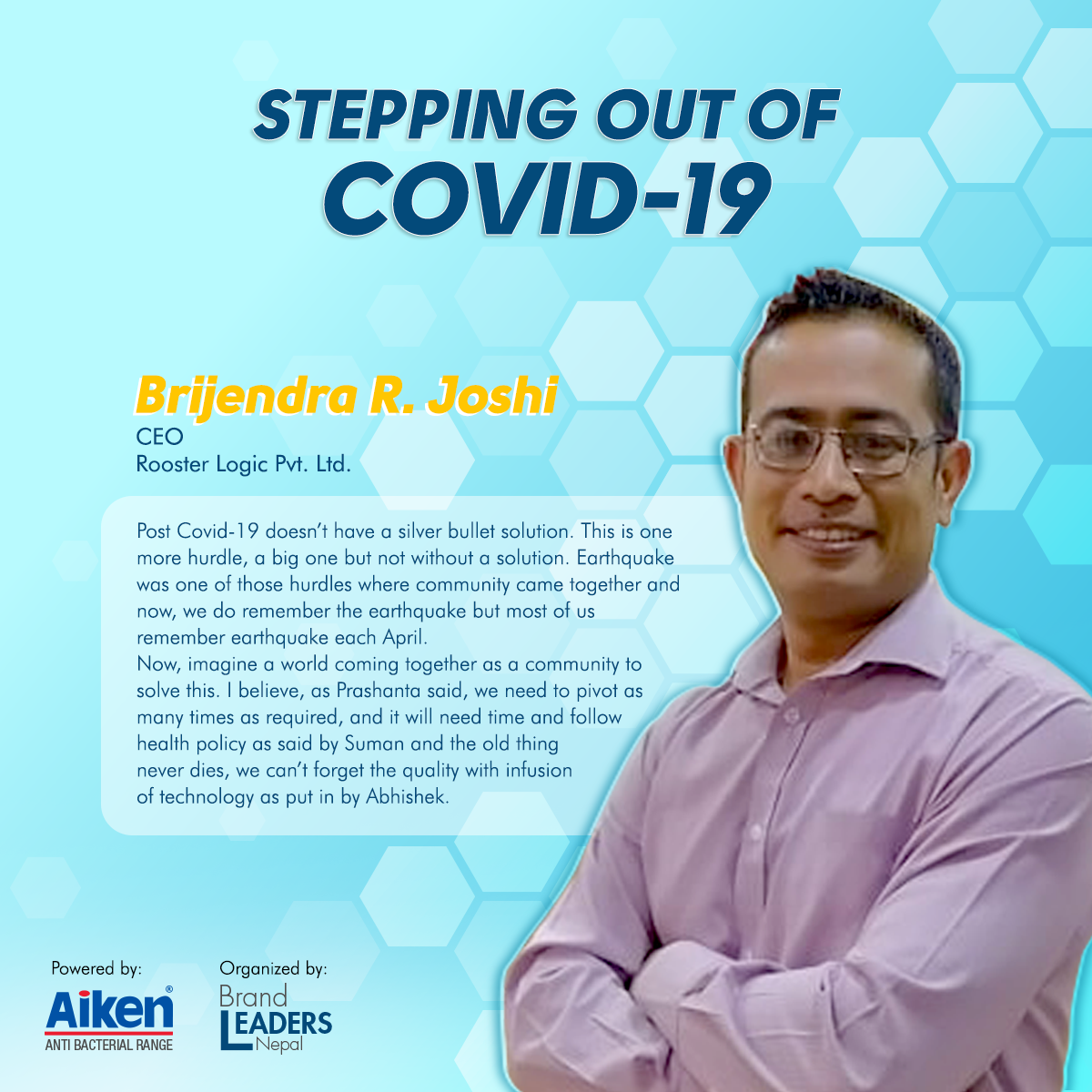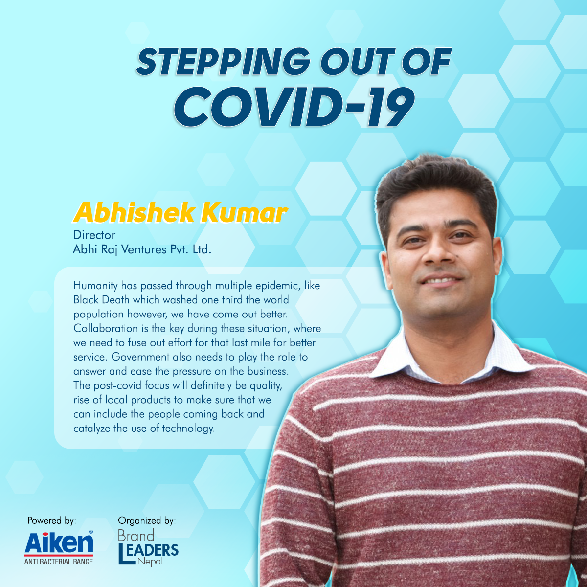 This year has been challenging, and we are anticipating how things will be once we step out of COVID. And how will businesses get back after this global crisis? On 24th May 2020, panelists Abhishek Kumar, Director of Abhi Raj Ventures Pvt. Ltd, Sole importer of Wipro Consumer Care and Vinni Cosmetics, Prashanta Manandhar, Founder of Home Supplies Pvt. Ltd. and Suman Shrestha, director of Sales and Marketing, Hyatt Regency along with moderator Mr. Brijendra Joshi, Chief Executive Officer, Rooster Logic Pvt. Ltd. discussed how industries plan to step out of COVID-19 in Nepal. The webinar was organized by Brand Leaders Nepal, with creative partner Digital Advantage and sponsored by Aiken Anti Bacterial Range. As the webinar brought panelists from different business backgrounds, their discussion shed light on how businesses are coping in these times, and how they plan to move on once they step out of covid.